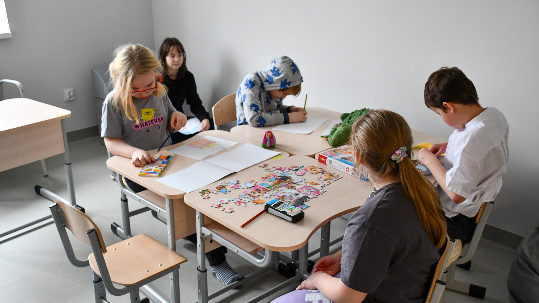 16 lutego, w pierwszy dzień po feriach zimowych, uczniowie klas I–III po raz pierwszy rozpoczęli zajęcia na nowo utworzonym piętrze Bloku Edukacji Wczesnoszkolnej. To przestrzeń zaprojektowana specjalnie z myślą o nich – bezpieczna, przyjazna i w pełni dostosowana do potrzeb dzieci z różnymi niepełnosprawnościami. Wszystkie sale lekcyjne, świetlica oraz gabinet zespołu psychologiczno-pedagogicznego znajdują się teraz w jednym miejscu, co znacząco podnosi komfort nauki i codziennego funkcjonowania.